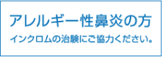 | ご協力いただけない方 | 以下のいずれかに該当する方 ①気管支喘息を合併している方 ②副鼻腔炎、鼻茸、鼻中隔弯曲症などの鼻疾患を合併している方 ③減感作療法や変調療法(ワクチン療法など)で治療中の方 ④狭心症・心筋梗塞などの心疾患、脳卒中などの脳血管障害の既往がある方 ⑤明らかな肝障害・腎障害を有する方 ⑥悪性腫瘍の既往または合併のある方 ⑦他の治験に参加中の方もしくは治験開始より4ヶ月以内に治験へ参加された方 ⑧妊娠中もしくは治験期間中に妊娠予定のある女性 ※その他条件により、ご参加いただけない場合があります。 |