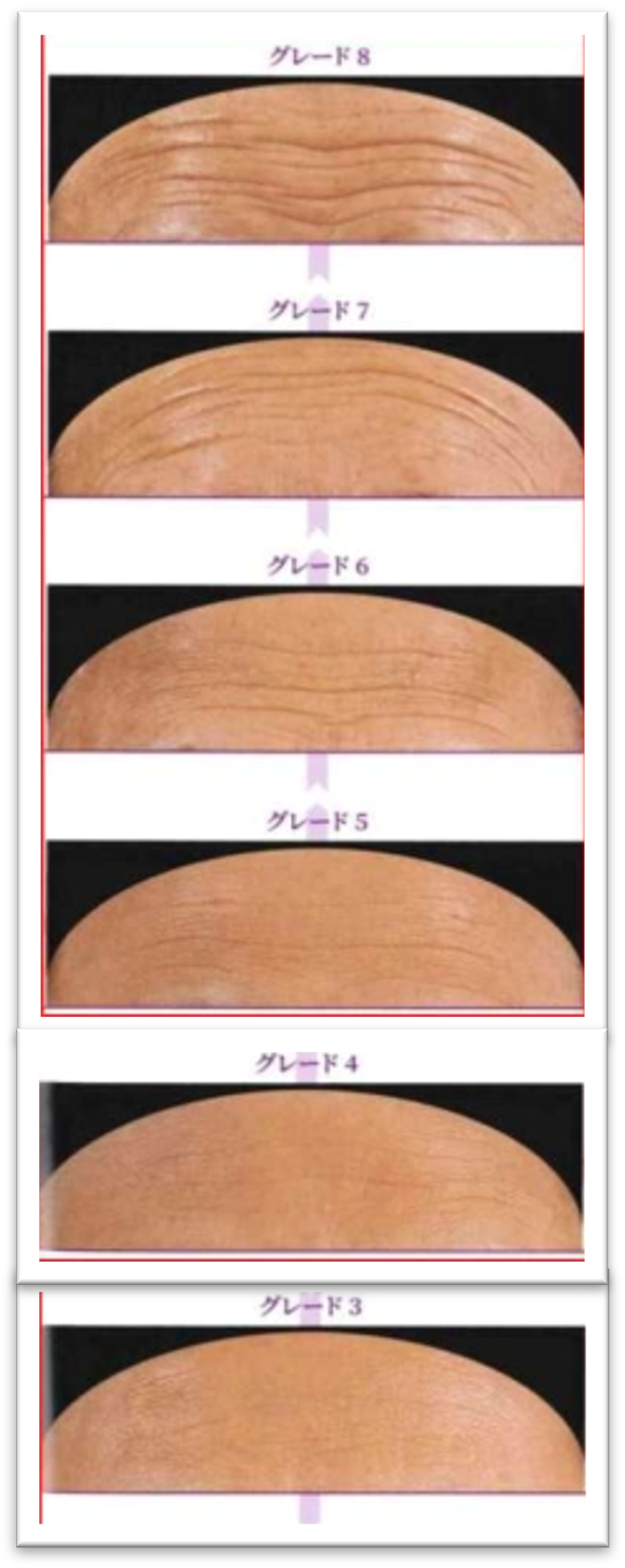 「額シワグレードの目安はこちら」